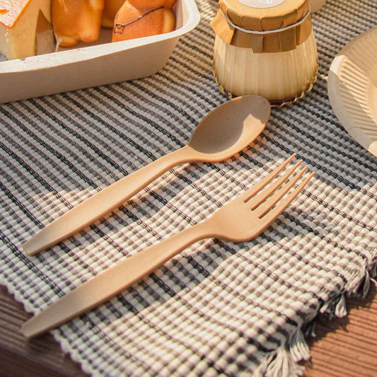 NATURAL UTENSILS: These eco-friendly forks, knives, and spoons are made with residual sugarcane fiber (bagasse) from the sugarcane plant after it has been squeezed of its juice. They are tasteless, so you can enjoy biodegradable forks and utensils without changing the flavor of your food.