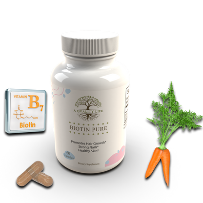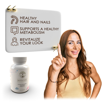 Unleash your inner radiance with Biotin Pure, an all-natural supplement specially formulated to support the health of your skin, hair, and nails. Enhanced with Biotin, a crucial nutrient known for boosting the production of fatty acids and glucose, our formula also aids in promoting cognitive performance, sharpening mental acuity, and reducing inflammation. Experience the transformative benefits of nature's bounty with Biotin Pure.
