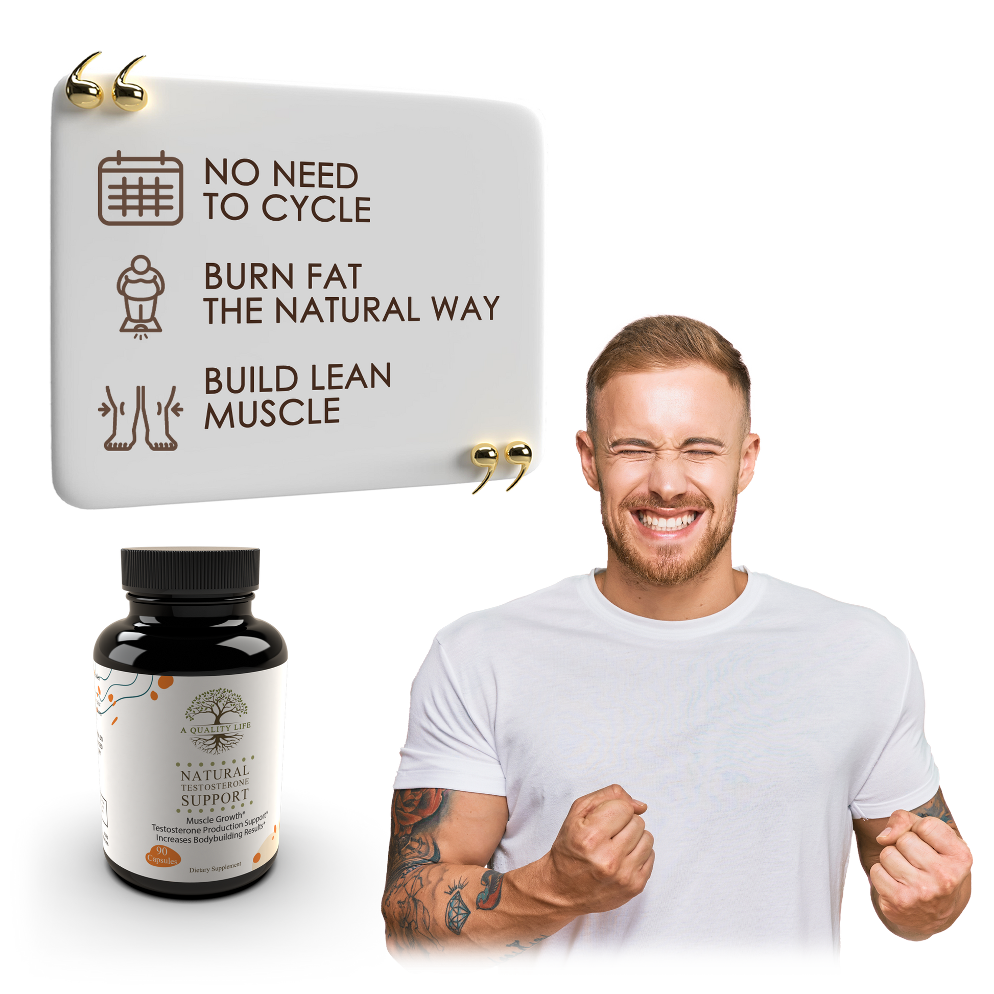 A Quality Life Natural Testosterone Support is a complete testosterone optimizer that contains ingredients that have been researched to help promote healthy testosterone levels in men. Healthy testosterone levels help you build lean muscle mass, perform better in bed, and better manage your fat levels. It’s a great supplement for helping you look and feel your best.