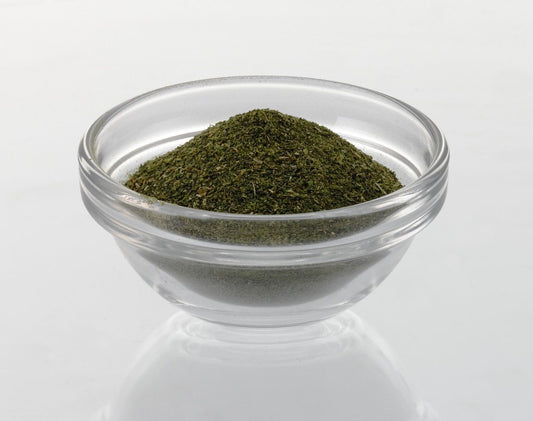 The flavor is bright and grassy. When folded into most other foods, it takes on the flavor of those foods, which makes it ideal for picky vegetable eaters. To use, sprinkle on salads, eggs, rice, quinoa, buttered popcorn, steamed or roasted vegetables, fish or chicken. Add to smoothies, soups, stews, pasta, spaghetti sauce – really, anything you enjoy eating! Our favorite way to use Kale Powder is sprinkled on scrambled or over-easy eggs in the morning.