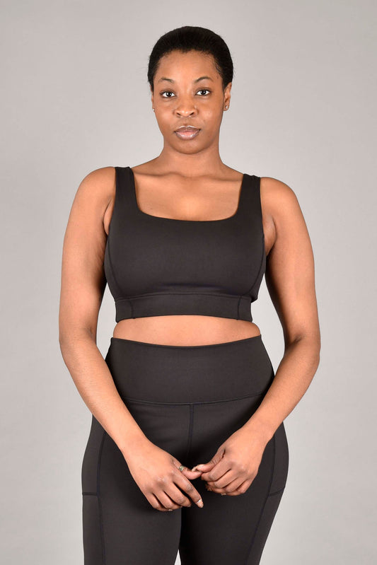 Anna Recycled Core Compression Longline Bra in Matte Black