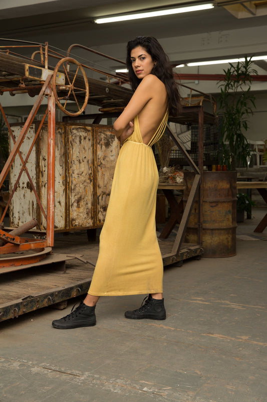 The perfect vintage silhouette, yellow dress , has spaghetti straps that allow for easy layering or simplicity when worn alone. This long body dresses covers where you want it, but is just tight enough to show off your figure. The cotton blend makes it addictively soft and the distressed yellow adds a vintage pop of color no matter how you style it.