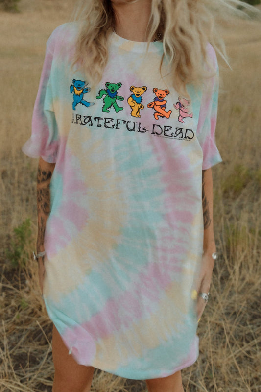 Crafted with care from 100% cotton material that's as gentle on the planet as it is on your skin. The vintage lavender color isn't just any dye; it's a low-impact wonder, giving you that washed-out concert tee vibe without the guilt. Imagine the spirit of Led Zeppelin, woven into the fabric of a dress that's as ethereal as "Stairway to Heaven" itself. It's comfort meeting classic rock, a piece that doesn’t just drape you in fabric but cloaks you in history. Made for those who want their wardrobe to whisper tales of epic guitar solos and ethically-made elegance, this dress is a love letter to the golden age of music and modern-day eco-consciousness. So rock it out to the sound of "Whole Lotta Love" or float through your day with "Going to California"—this dress hits all the right notes.