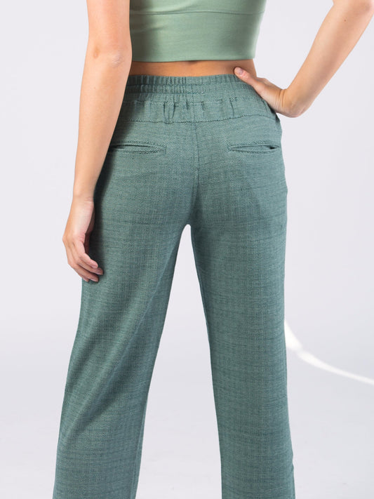 Wide Leg Herringbone Flex Pants | Calathea Green