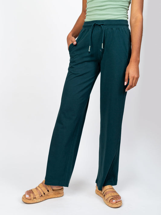 Wide Leg Herringbone Flex Pants | Deep Sea