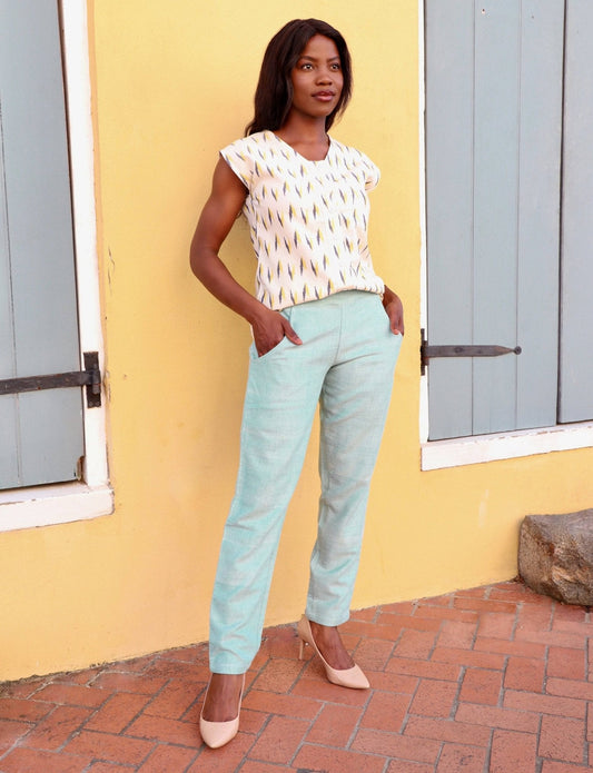 Vendor:Passion LilieRegular price From $40.00Regular priceUnit price per$68.00Sale price From $40.00Olive green is the new neutral. Perfect for the fall season. These pants are made from a beautiful handwoven ikat fabric in a fair trade environment. Pair them with a simple white blouse and accessories and you are ready for your next lunch date or even work meeting. These pants feature pockets for those who want to go minimal and leave the purse behind. Tapered toward the bottom of each leg and hitting at the ankle, these olive green ikat pants make anyone’s legs look instantly longer, not to mention more fashionable!