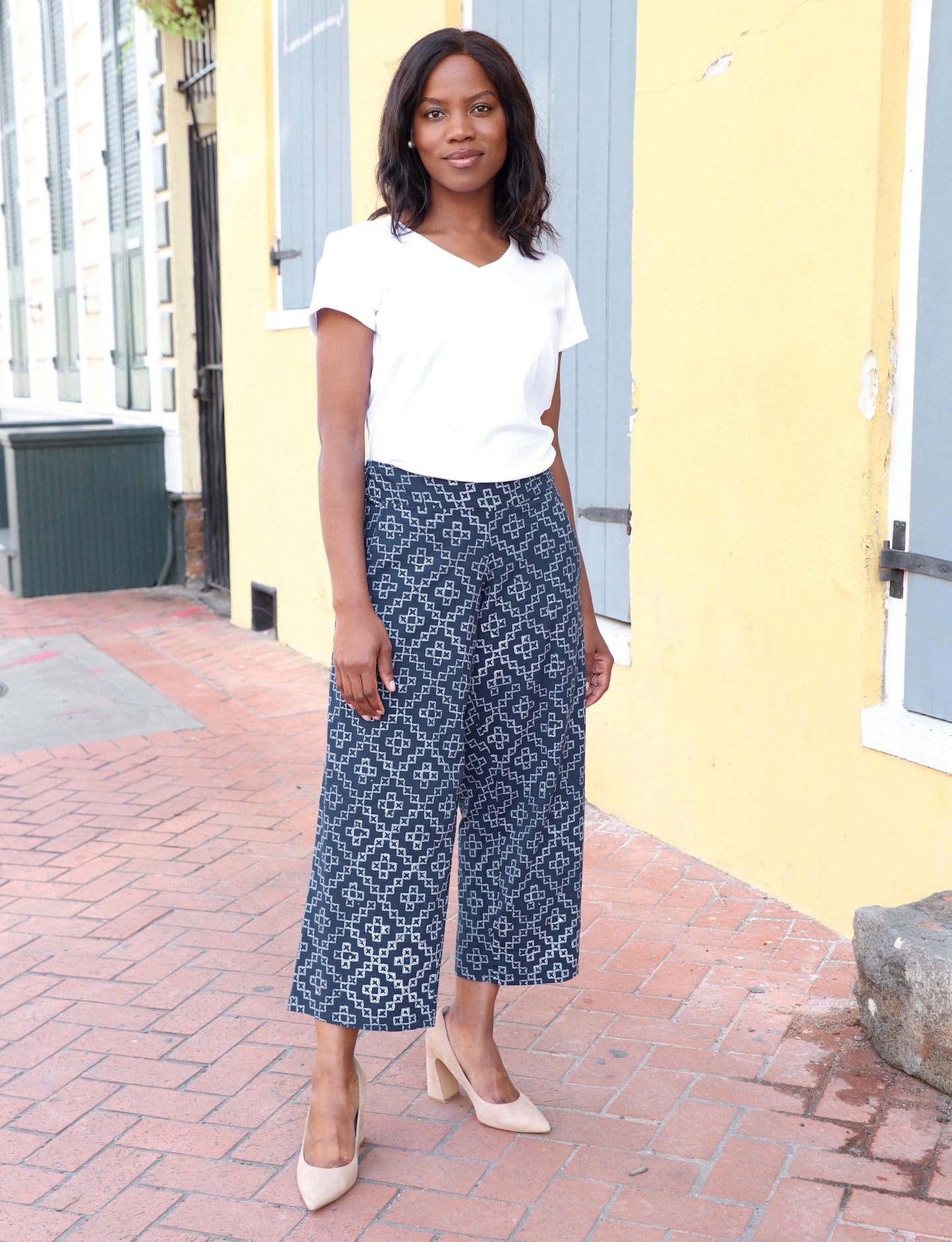 • Effortlessly fashionable, our wide leg crop pants are both comfortable and stylish. Our blue wide leg pants hug all the right places. These blue wide leg pants are curve friendly and flattering for those with fuller thighs, hips or bottoms.