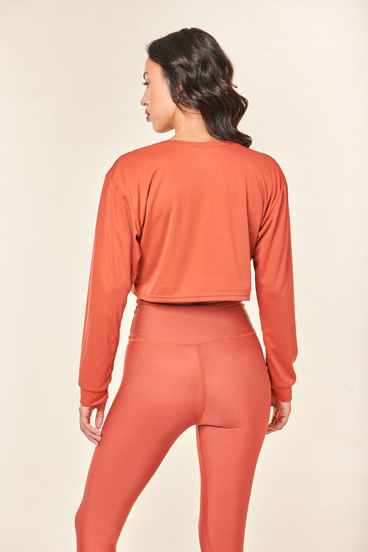 This cropped, crewneck long sleeve features a clean, straight hem and relaxed raglan sleeves. It's classic cut and perforated mesh fabric allows effortless layering capabilities.