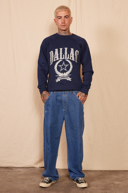 Made during their glory days, Our Vintage 90's Dallas Cowboys Crewneck is a must for any fan. Made from an ultra soft blend of cotton and polyester, this is meant to be a wardrobe staple. Shows some signs of wear, but in overall great vintage condition. Please see photos for details.