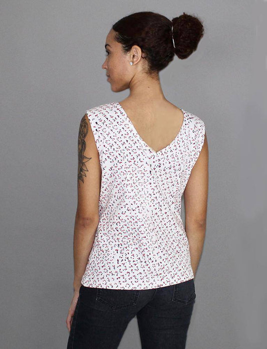 Vendor:Passion LilieRegular price $24.00Regular priceUnit price per$48.00Sale price $24.00Our white Sparkler Shirt features navy and red splatter dots for a unique, joyful look. The V-neck in the front and low V-neck in the back give it a more sophisticated cut that can be dressed up or down with ease. It’s also sleeveless and made of soft, breathable, eco-friendly organic jersey cotton, making it perfect for Fourth of July, game day, and any other summer day.