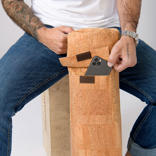Meet your yoga mat's sidekick! Make yoga practice a little easier with this simple yet functional bag to carry your accessories. Large enough for a standard yoga mat, towel, water bottle and strap! Did you know that cork is the perfect BFF for your workouts? Cork is entirely non-toxic, organic and all-natural. Best yet, since since cork repels water, no mold or mildew will not form on your yoga mat.