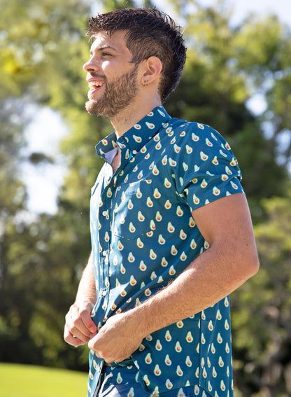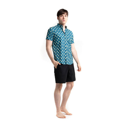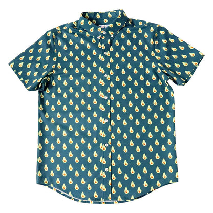 • This Performance Button Down Shirt is made out from a hybrid blend of recyclable polyester and lycra that makes it stretchy, breathable, and so comfortable you will never want to take it off. The fabric is wrinkle-free, so you can just put it on and hit the floor running. It is fast drying so if you accidentally spill an adult beverage on yourself while you hang out at a luau, beach bar, pool party or barbecue, there will be nothing to worry about. Talk about renewable!
