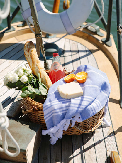 Understated luxury in classic stripes and pleasing hues finished with a playful fringe. The familiar plushness and absorbency of our signature Turkish towel redesigned for your hands. Expertly crafted, long-lasting, and stylish, these towels will add a touch of sophistication to your bathroom and kitchen for countless washes. Also available as a matching bath towel.