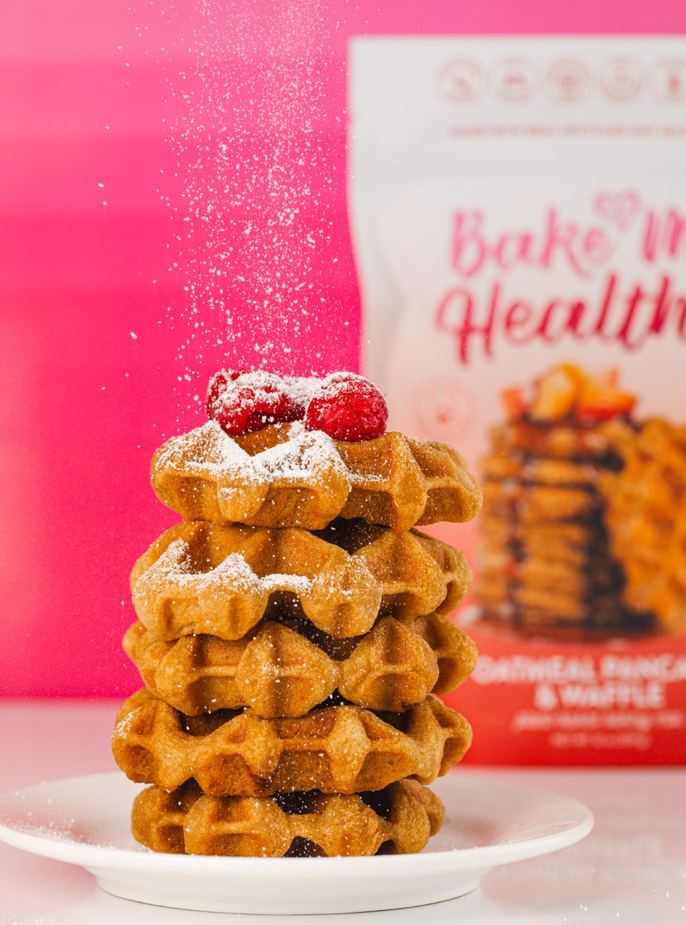 Bake Me Healthy Oatmeal Pancake & Waffle Plant-Based Baking Mix wholesale | Power up your mornings with an incredibly yummy breakfast that’s easy to make and even easier to enjoy. This versatile, protein-packed mix with a whopping 8 grams of protein is made with Bake Me Healthy Oatmeal Pancake & Waffle Plant-Based Baking Mix | Top 9 allergen-free ingredients and upcycled sunflower protein flour for naturally sweet, fluffy pancakes or crisp waffles. Fuel yourself and the planet!