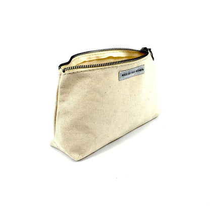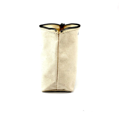 Handcrafted with 100% organic cotton canvas, eco-friendly leather fringe, and a quality YKK metal zipper. This wide bottom pouch is great for holding all your personal care needs, makeup, tech cords, or other daily essentials on the go.