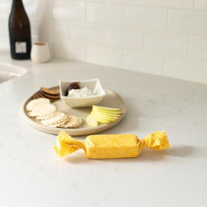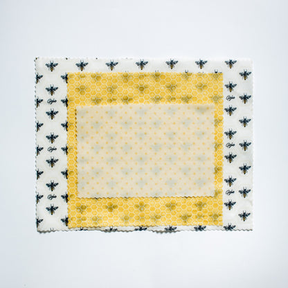 We start with 100% cotton in beautiful prints, then add some magic. Beeswax from Canadian bees (they’re so polite), tree rosin for stickiness, jojoba oil for softness. We edge each one by hand with a zigzag that stops fraying, and voila!
