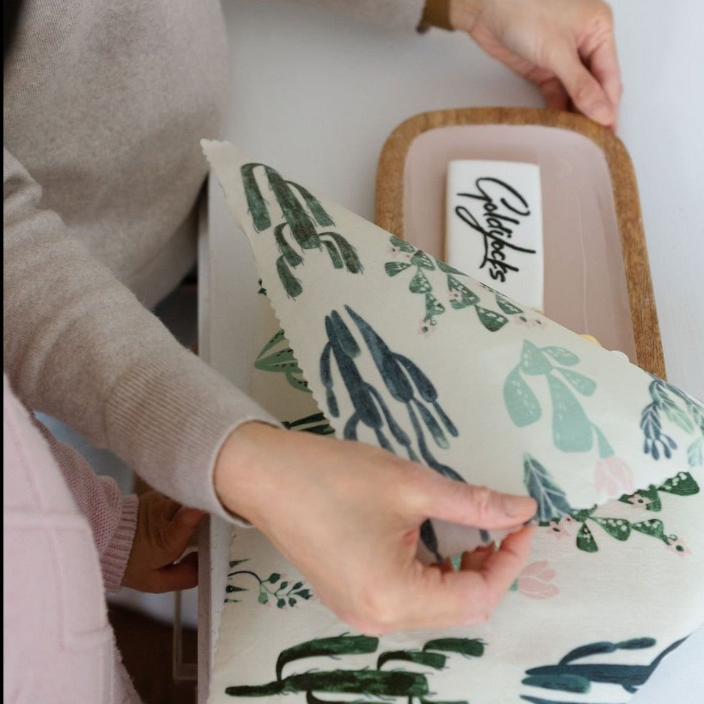 An all natural, reusable & eco-friendly alternative to plastic wrap in the kitchen. Wash in cool, soapy water. Do not heat.A fun and youthful set, for the joyful gardener, plant enthusiast or the one who dreams of escaping to the desert sun.