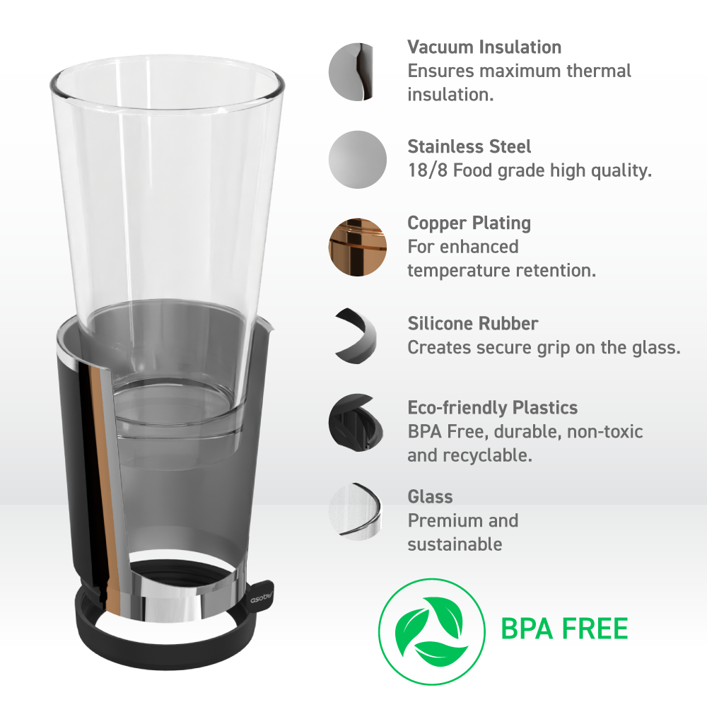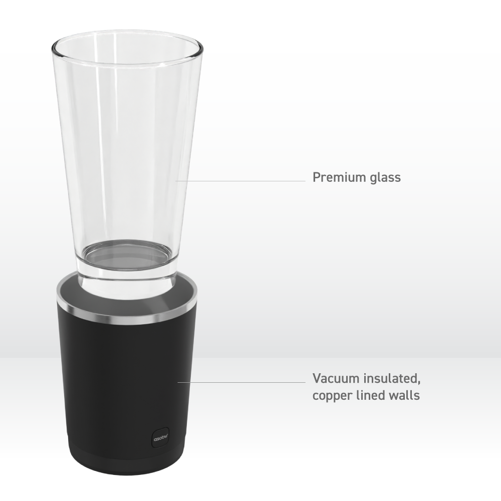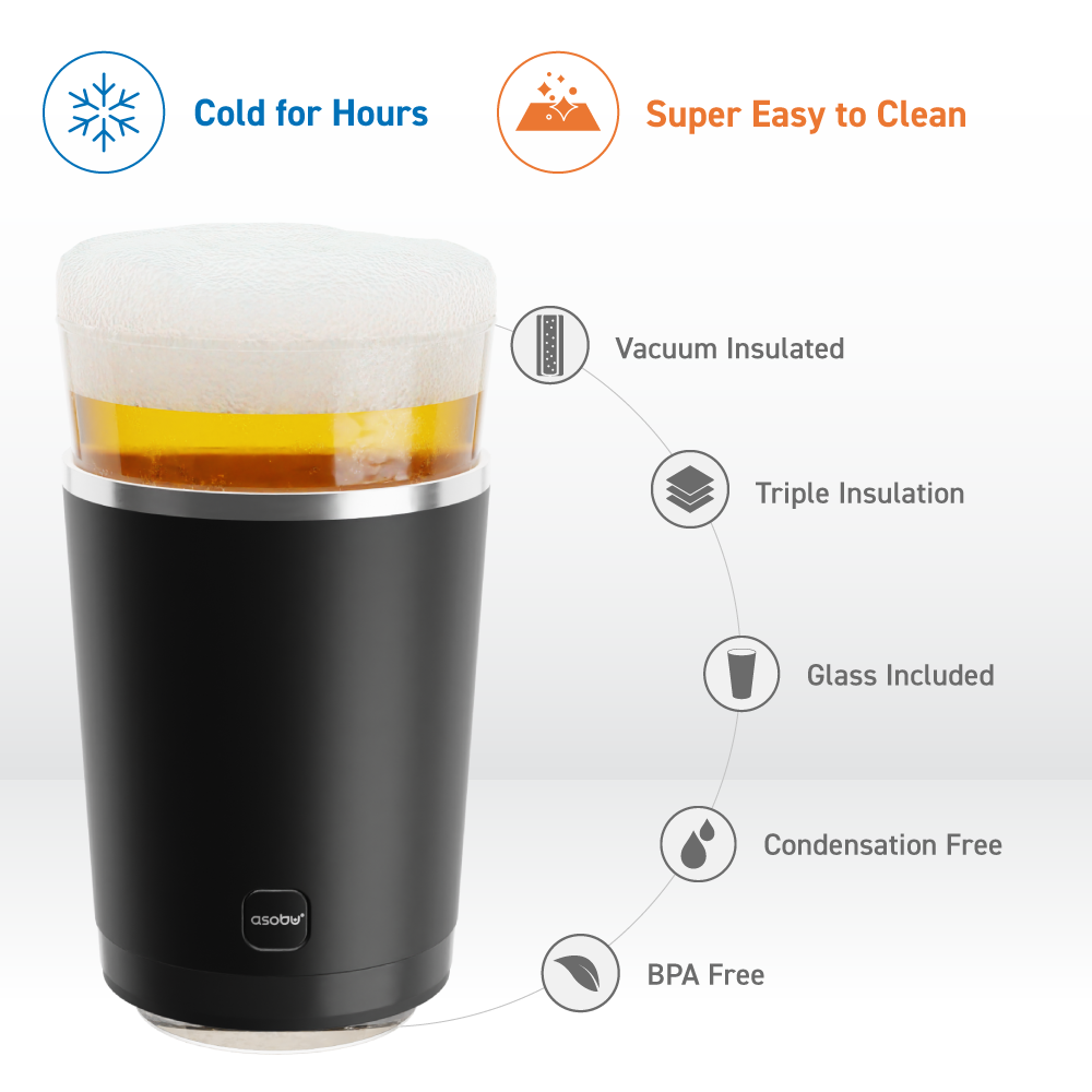 Keep your pint perfectly chilled with our Insulated Black Beer Sleeve — a premium pint glass with a vacuum-insulated stainless steel cooler. It has all the benefits of a normal pint (like maintaining the flavor of your beer), but without the slippery condensation and poor temperature retention of a plain glass. Your brew stays cold for hours — not that you ever take that long to finish it!