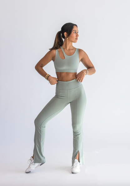 Step into versatile fashion with the Cut Out Bootcut Legging. These pants redefine activewear versatility, meticulously crafted from 83% recycled polyester for a sustainable touch that perfectly complements your dynamic lifestyle.