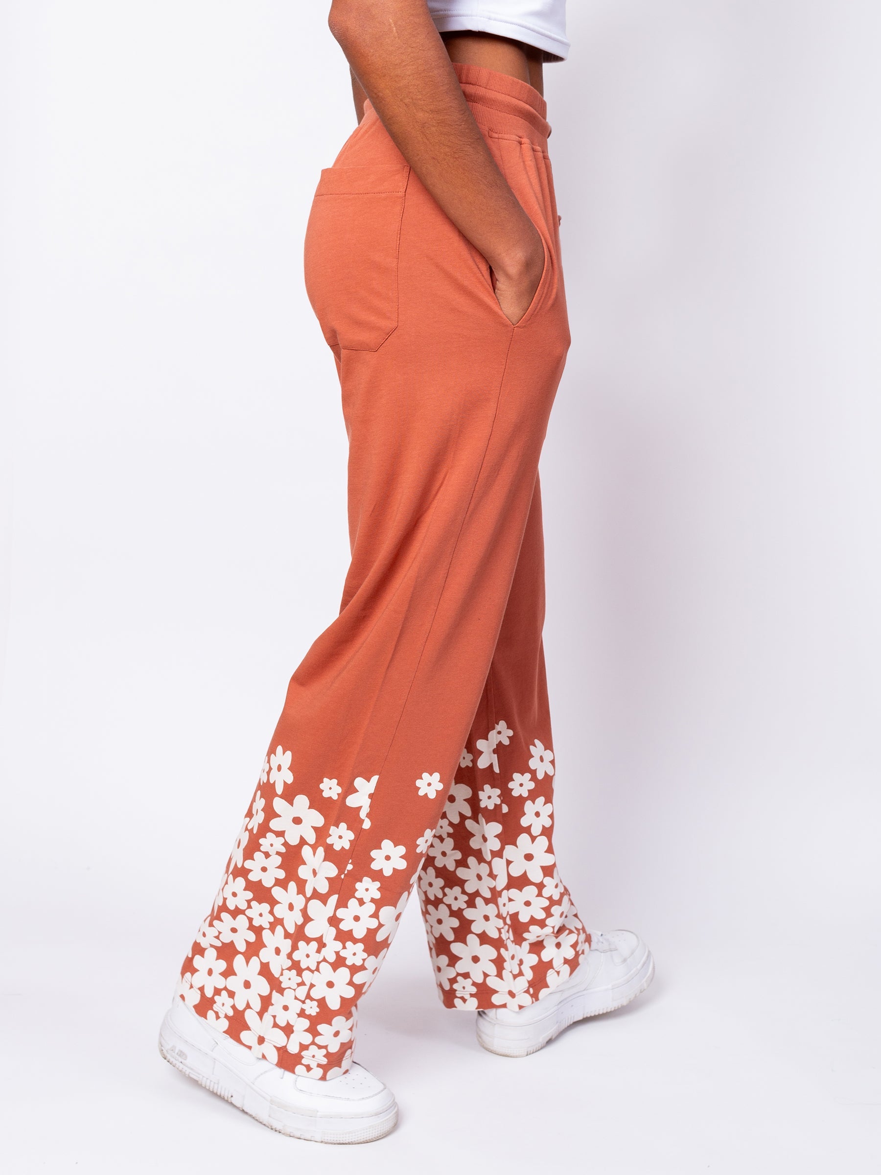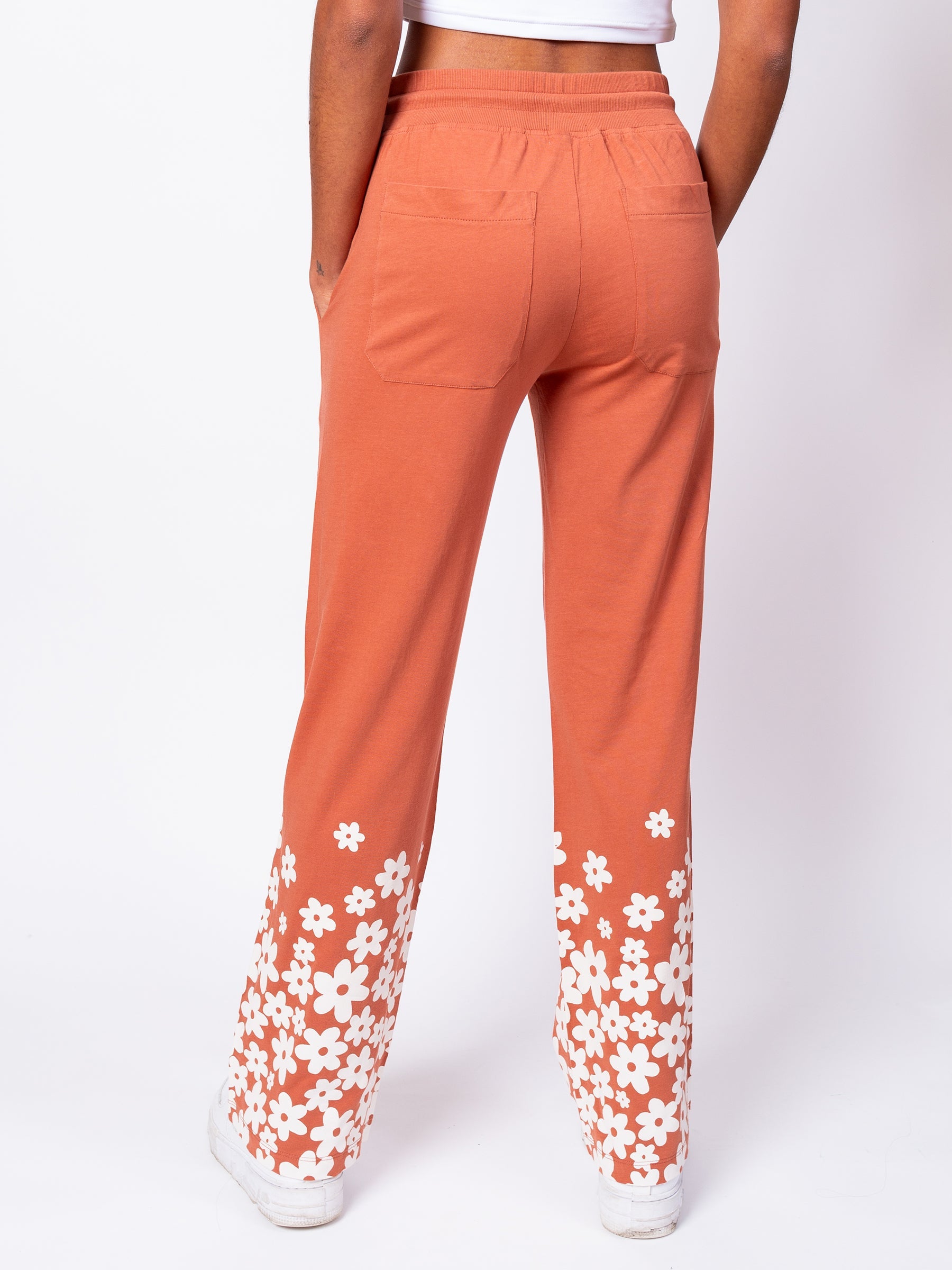 Bright and cheerful, just like the sun-loving flowers that inspired the design. Daisies wrap around the bottom hems, gradually becoming more sparse as the pattern extends up the leg. Free-form and flowy, this floral pattern serves soft, natural style.