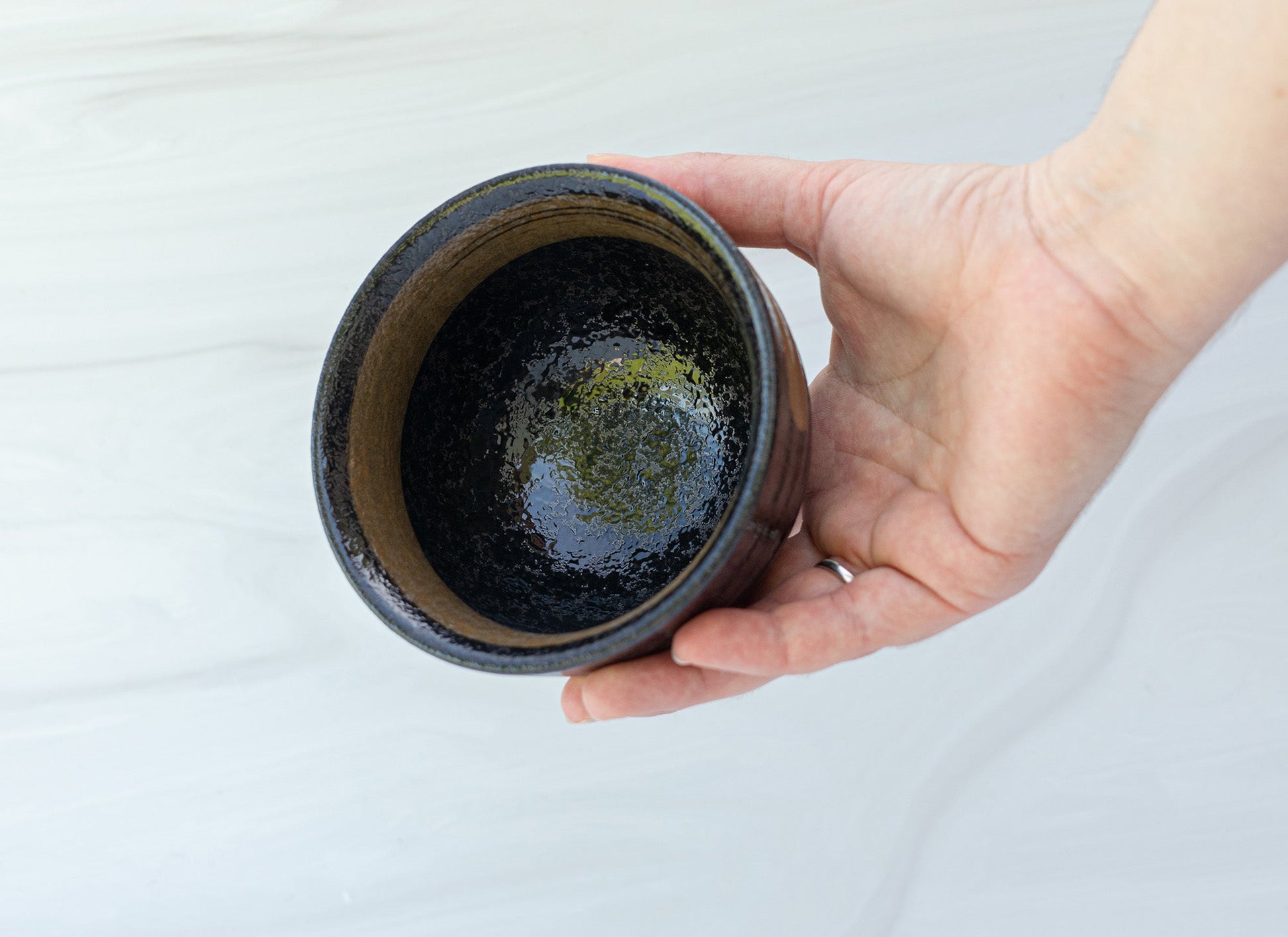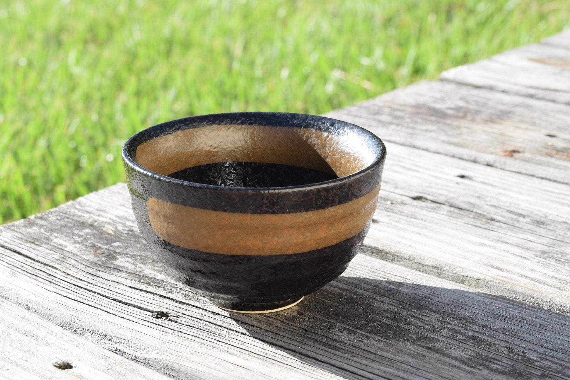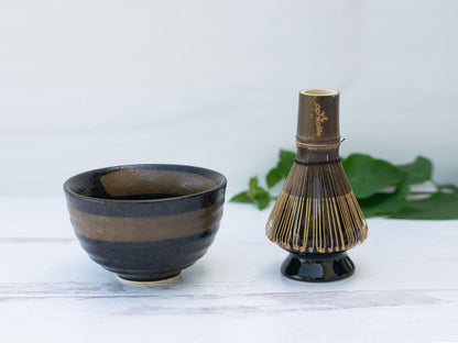 - Brown ceramic matcha bowl