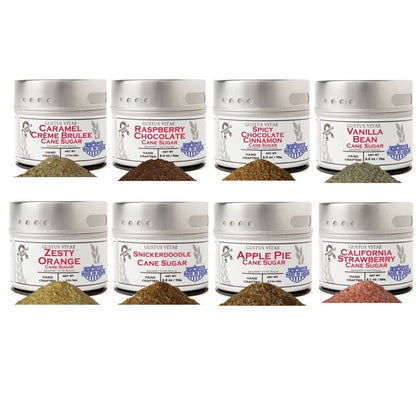 This collection of eight gourmet sugars is all you need to unleash your master baker: each and every one of these unique artisan cane sugars is built for elevating dessert to something exceptional. These delicious, all natural sugars can be swapped in in place of boring old sugar, literally baking in the flavor at the earliest stages of cooking, so your raspberry tart is extra raspberry-y, or your strawberry shortcake is decadently doubly strawberry right from the start. And sometimes simple is best: dust french vanilla ice cream with both Caramel Creme Brulee and Vanilla Bean Cane Sugar for a simple desert that's as delicious as it's beautiful.