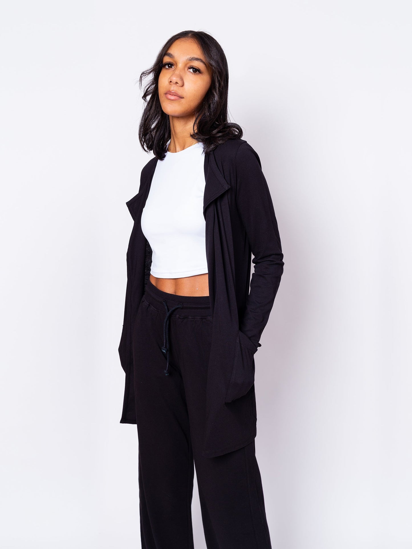 A staple piece that's anything but basic. The perfect light-layer in classic black that cuts a flattering silhouette.
