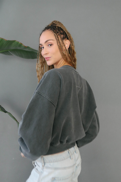 The perfect slouchy crewneck. Our Grateful Dead Stealie Bears Sweatshirt features the band's iconic Stealie and Marching Bears logo. Crafted from 100% Organic Cotton and washed for a vintage aesthetic, this sweatshirt is a must for all fans. With a slouchy and slightly oversized fit, it is slimming on all body types.