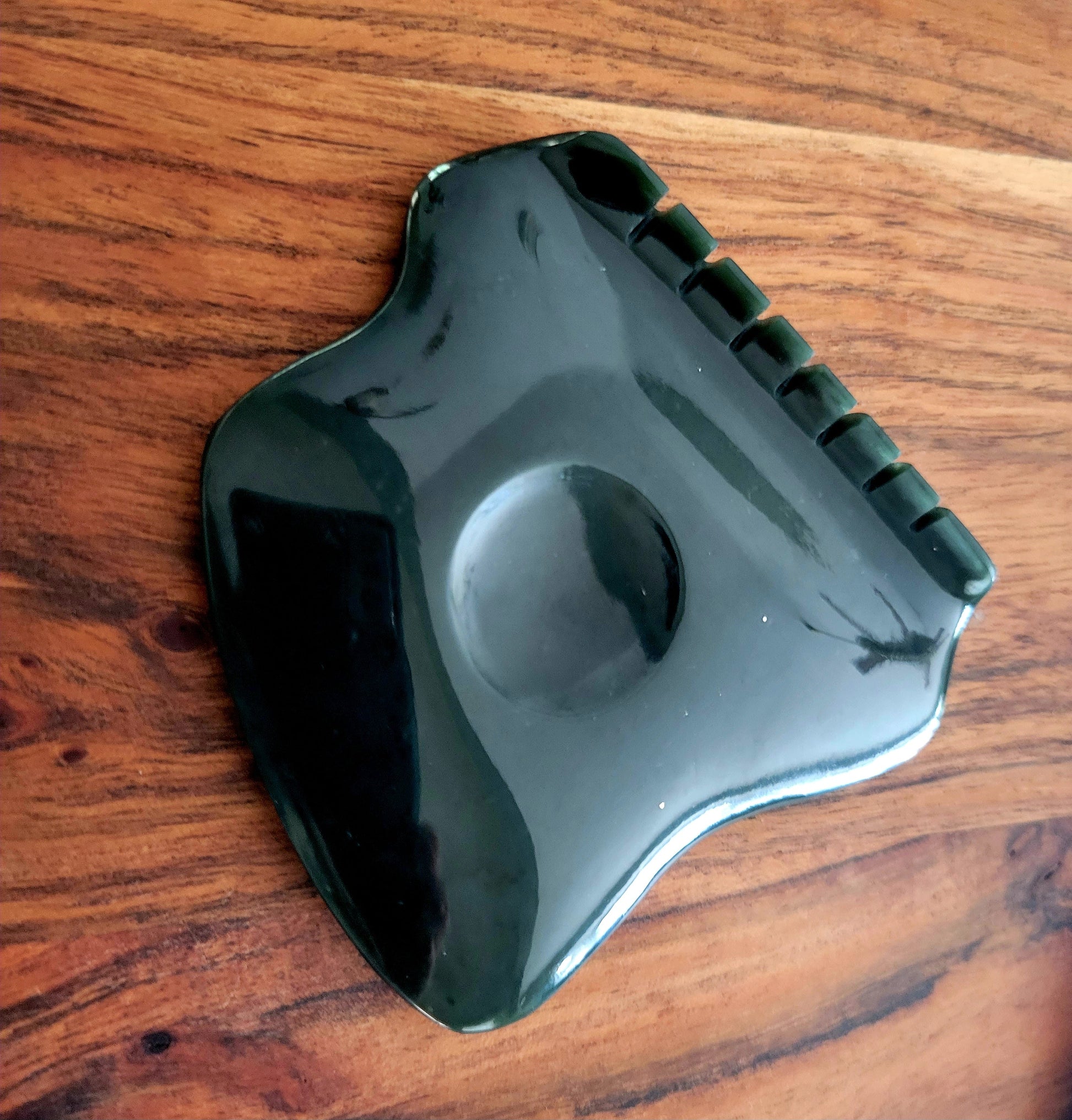 Gua Sha is ergonomically designed to enhance your natural beauty by helping relieve facial tension and making your skin radiant. This genuine stone is handmade from grade A Nephrite Jade. Gua Sha is a traditional Chinese therapy dating back at least 700 years. Gua sha works great on the neck, face, back hand, wrist, shoulders and feet.