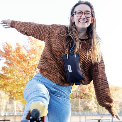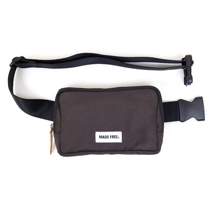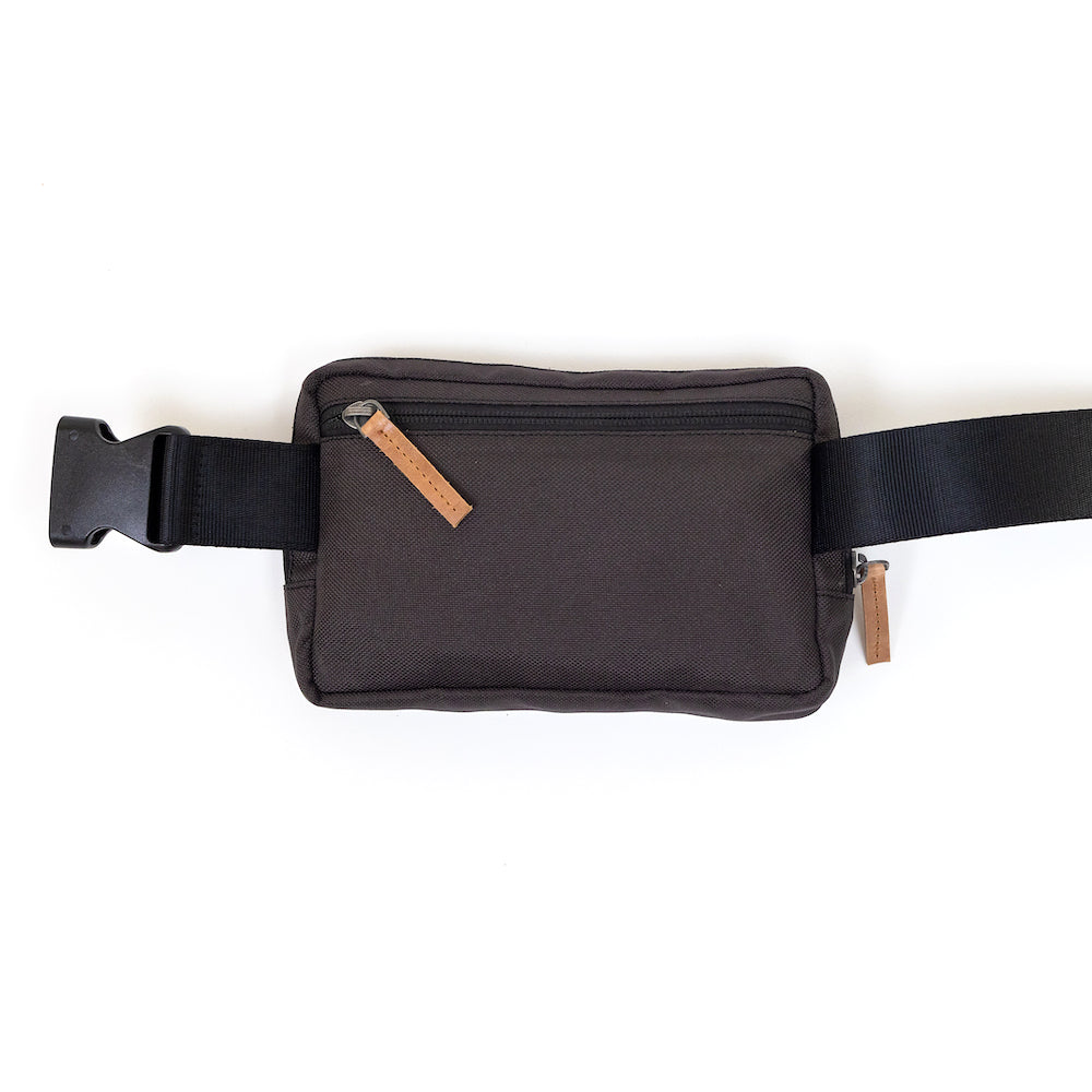 Made with our durable weather-resistant recycled polyester and seatbelt material adjustable strap. Plenty of pockets and features to meet your minimalist needs for phone, keys, wallet and other items on the go. Includes a secure backside pocket.