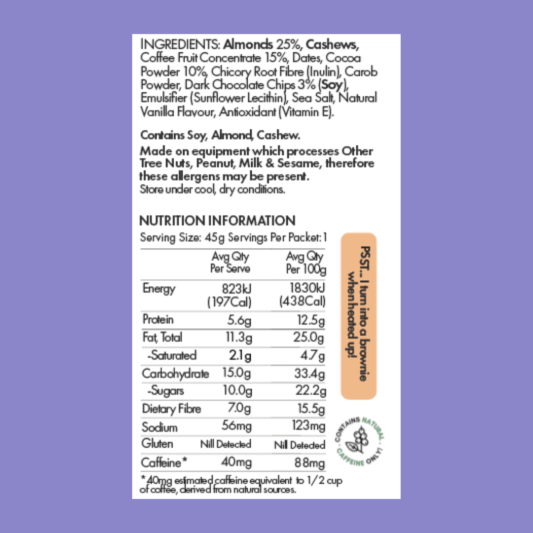 - No added sugar or sugar replacers, just natural sweetness from the coffee fruit & organic dates