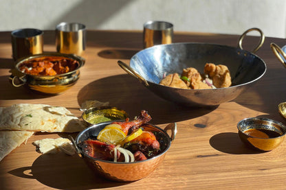 Our collection of Indian Kitchen Essentials is meticulously crafted in the heart of Moradabad, India, where tradition meets culinary excellence. Each piece in this collection embodies the rich heritage of Moradabad's metalwork craftsmanship, showcasing the perfect blend of functionality and artistry. From utensils to servingware, these kitchen essentials are designed to elevate your traditional Indian cooking experience.