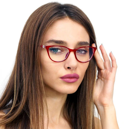 Juliet Blue Light Glasses in Red.