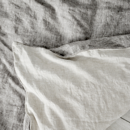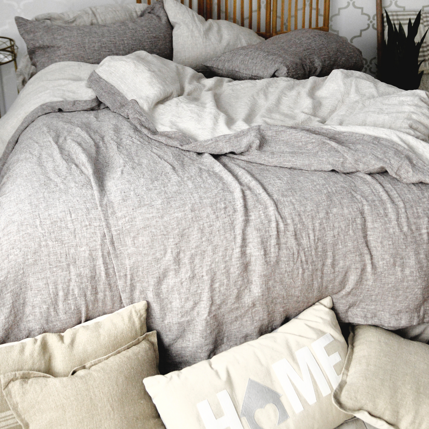 Timeless color shade for timeless linen. Special melange double weave provides this linen Duvet Cover Set extra durability, without adding to the weight. Please note Natural/Mocha Duvet Cover is double-sided and comes with two pillowcases of you color choice.