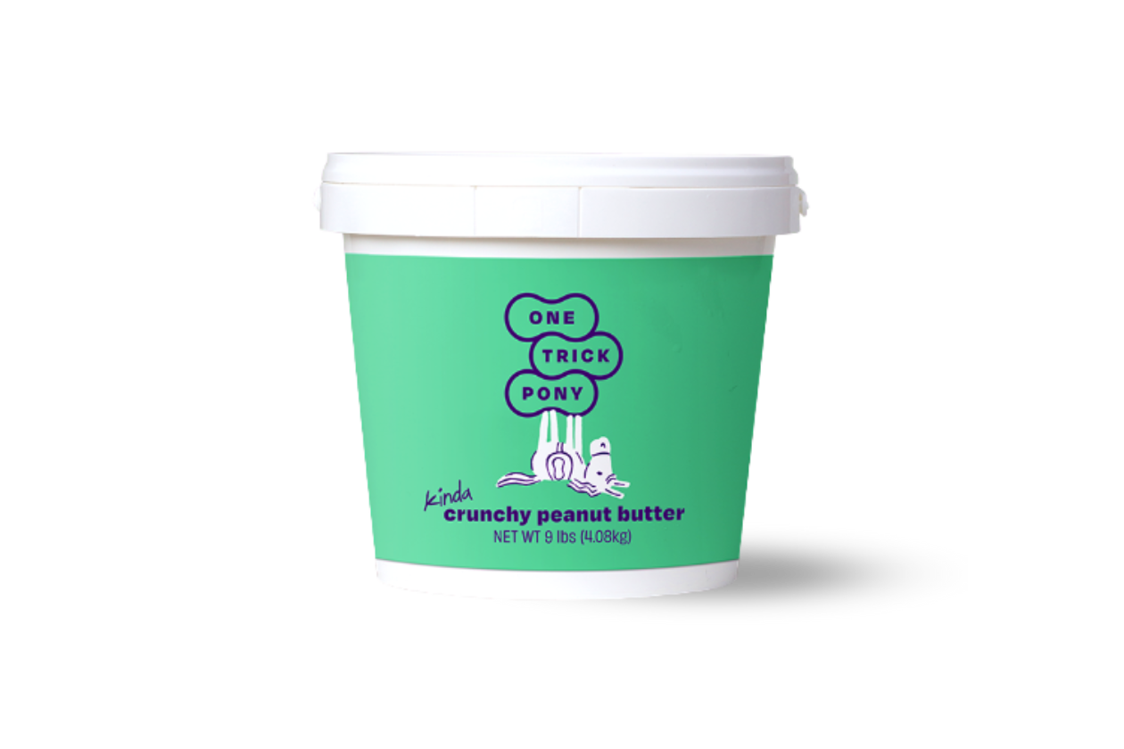 One Trick Pony's 9lb Tub - Kinda Crunchy wholesale product delivery near me | Peanut Butter | Ready to prove your devotion to the PB lifestyle? Say no more. Forget the 13oz jar and supersize your Kinda Crunchy order to 9 whole lbs. How to get through all 9 lbs? Now that's up to you. Our PB is naturally sweet, super delicious and kinda crunchy. All without additives like palm oil or sugar.Just the best Argentinian roasted peanuts and a dash of Patagonian sea salt... now in bulk! Deets:-One 9 lb plastic tub of Kinda Crunchy -Nutrition facts here -Looking for wholesale pricing? Email hello@onetrickponynuts.com or visit https://onetrickponynuts.com/pages/wholesale.
