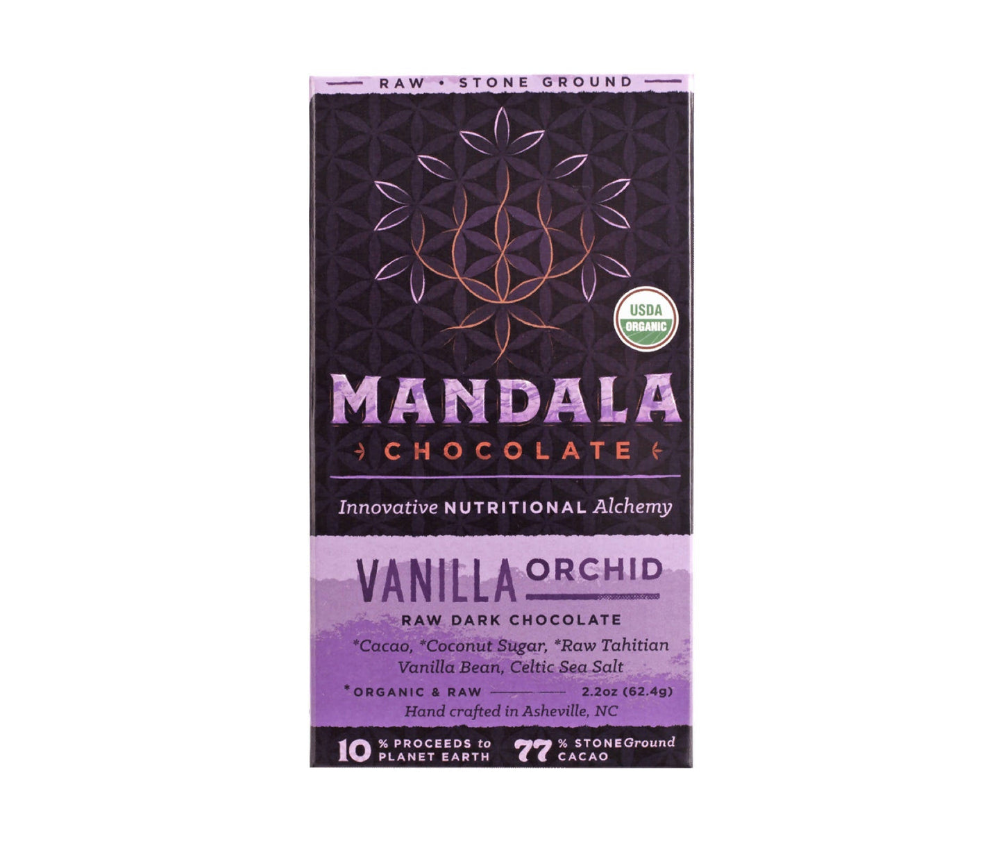 Mandala Chocolate's Organic 77% Cacao Vanilla Orchid Dark Chocolate takes some of the highest quality vanilla and mixes it with the highest quality chocolate for a pure, silky smooth, and delicious raw chocolate bar. Ingredients are sourced from the best cacao and vanilla farms possible with attention to environmental sustainability and fair work and wage practices. This way we ensure that our handmade chocolate is of the highest quality.