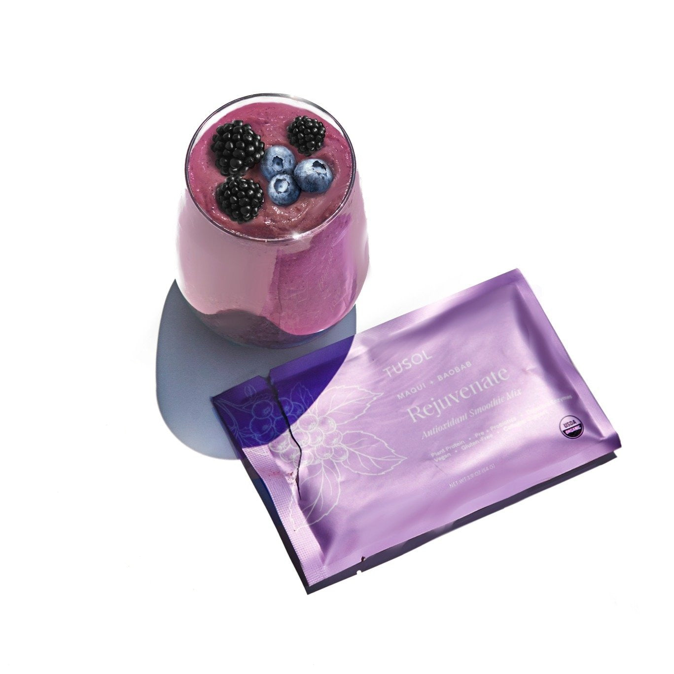 Research: Our REJUVENATE Smoothie is filled with antioxidant-rich botanicals that combat oxidative stress, reduce the effects of aging, and work alongside vitamin C to stimulate healthy collagen production. Both chaga and maca contain enzymes that increase each other’s antioxidant potency, sesame seeds and tocotrienols together increase absorption of vitamin E, and sesame seeds and maca work together to balance hormones — all to leave you feeling your lightest and brightest.