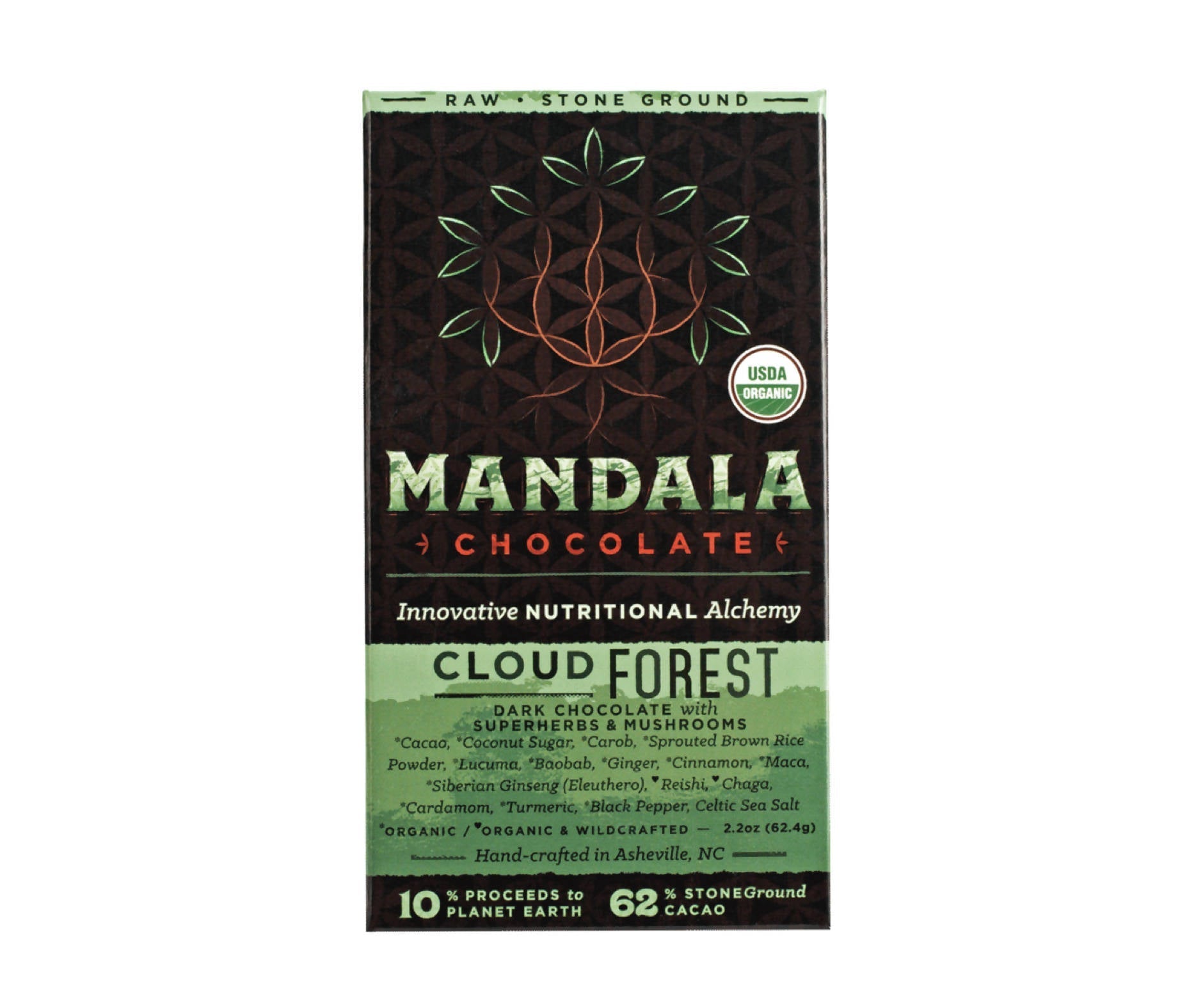 Mandala Chocolate's Organic Raw 62% Cacao Cloud Forest Dark Chocolate celebrates the healing power of adaptogenic herbs and the silky sweet magic of Baobab and Lucuma. This Special Edition Chocolate is helping save The Cloud Forests of Cerro El Amay in Guatemala and in Southern Appalachia.