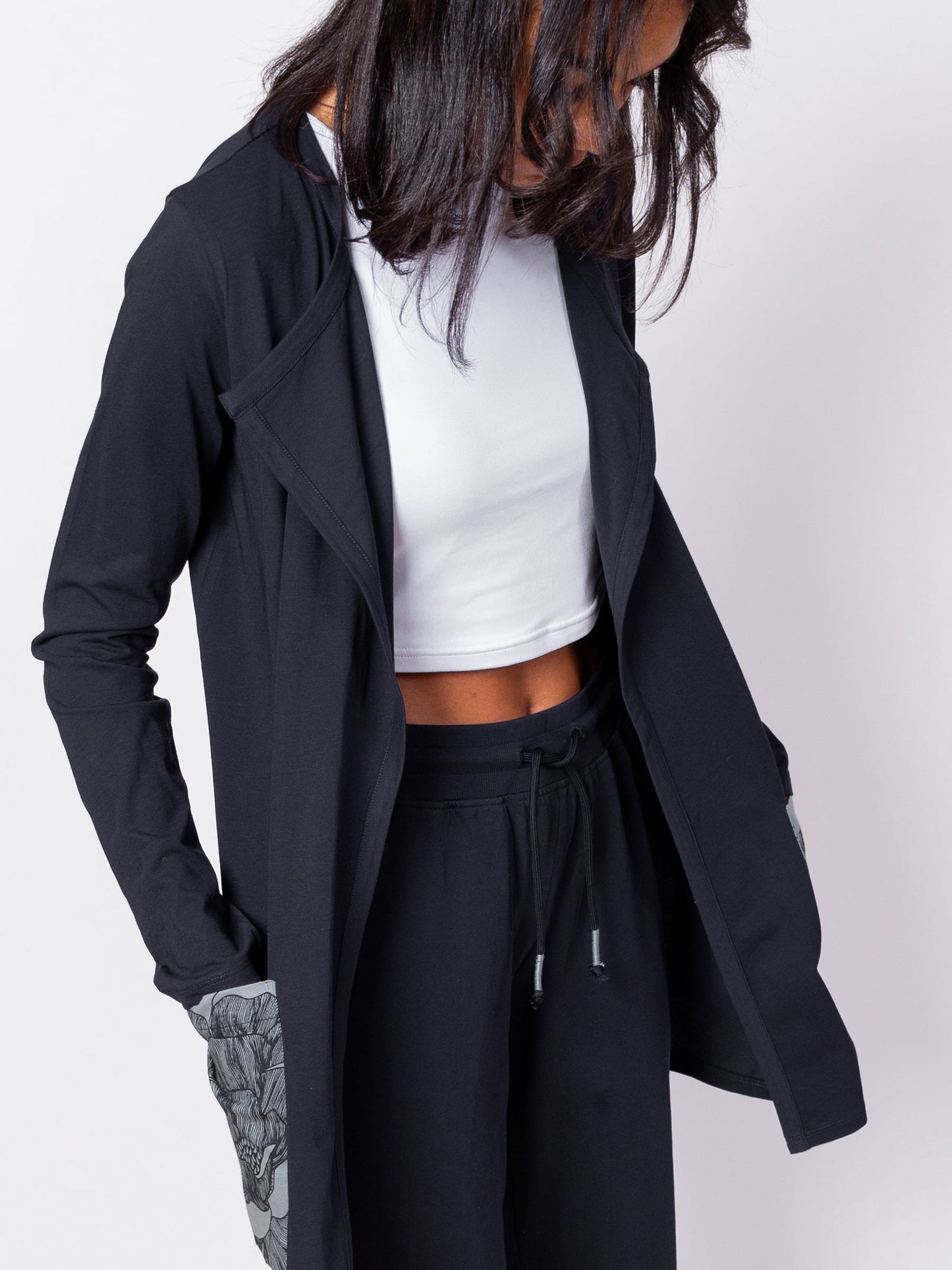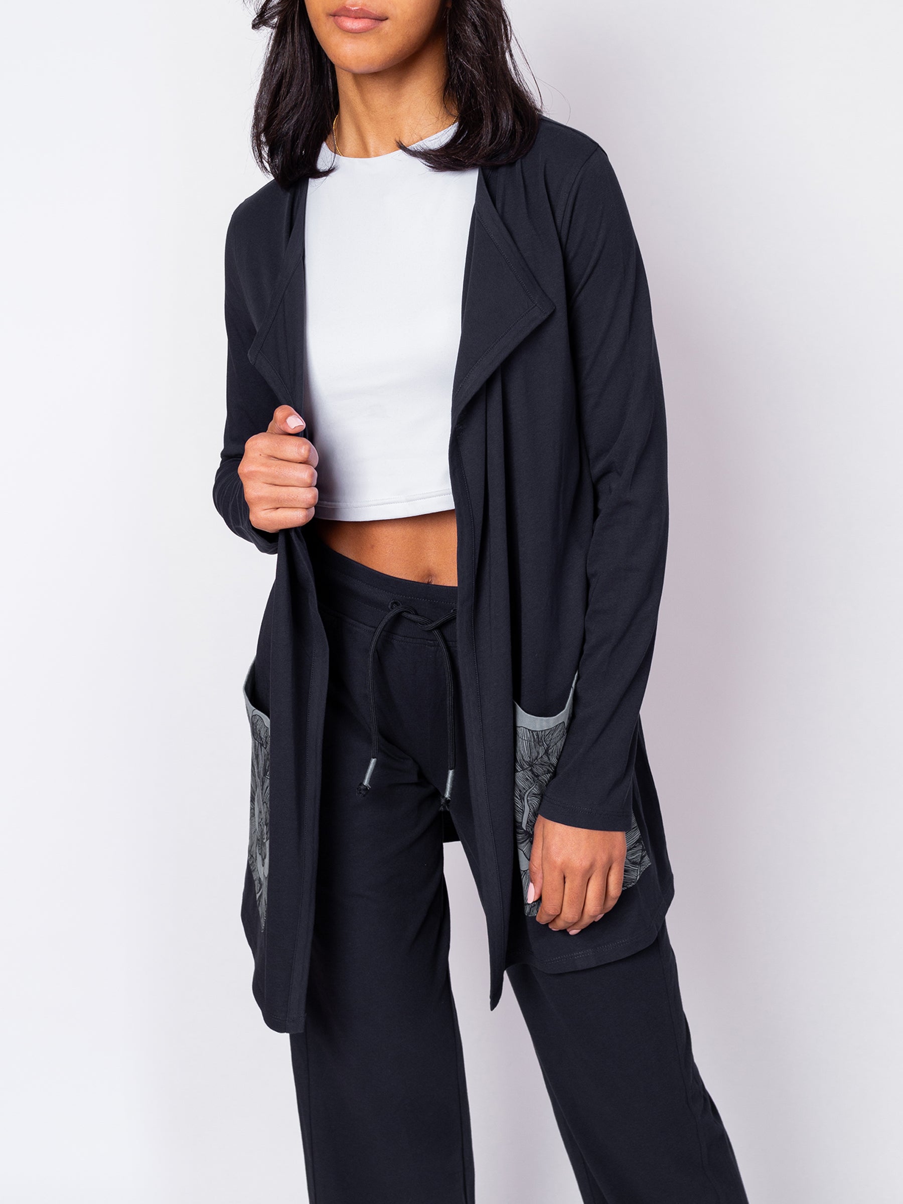 Looks great thrown over your favorite jeans + tee or paired with our matching Peony Wide Leg Pants, Peony T-Shirt Dress, or Peony Maxi Dress.