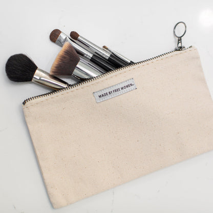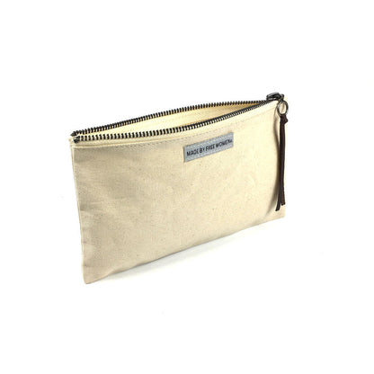 Handcrafted with 100% organic cotton canvas, eco-friendly leather fringe, and a quality YKK metal zipper. Great for phone, tech cords, and other small essentials.