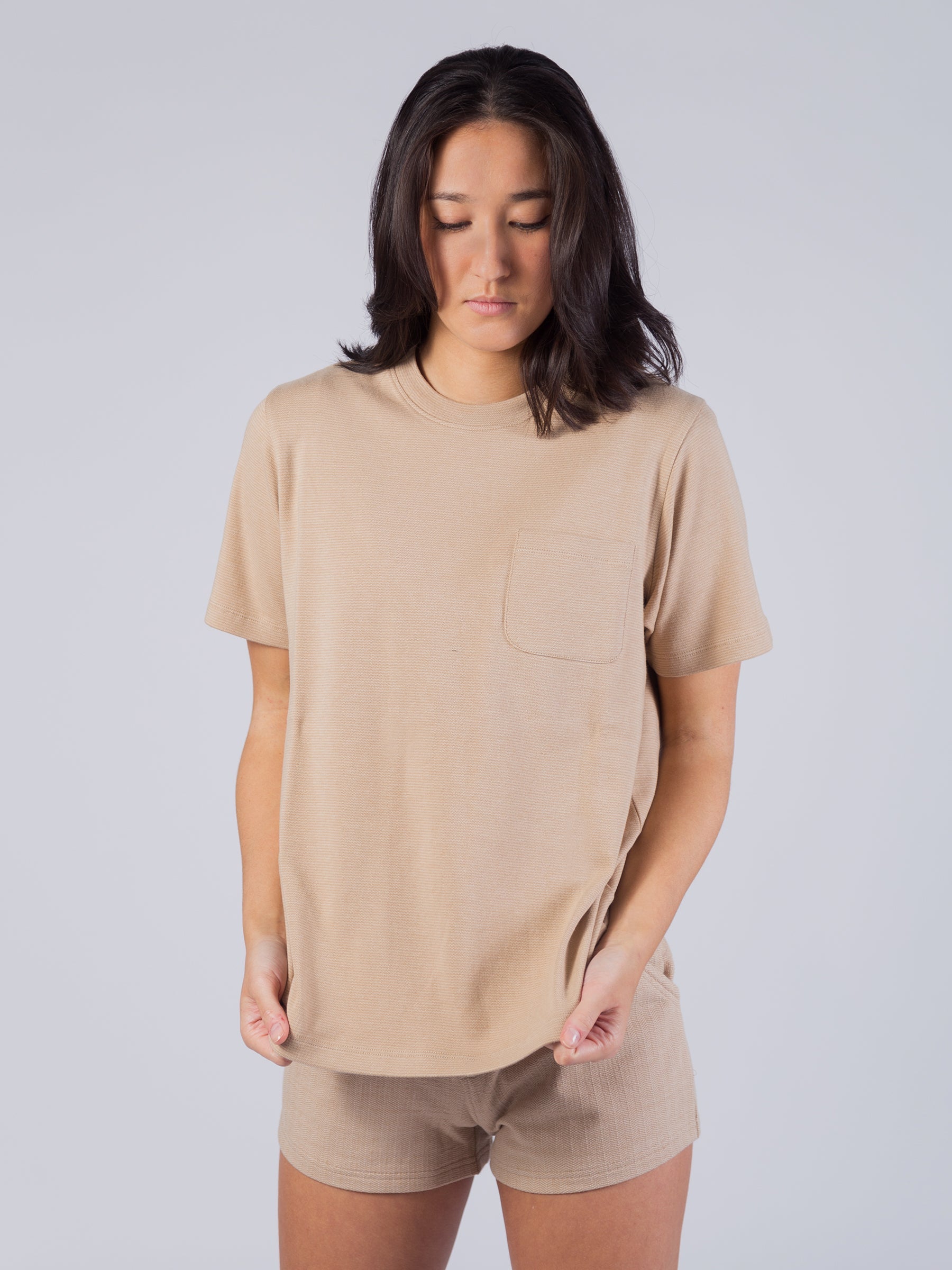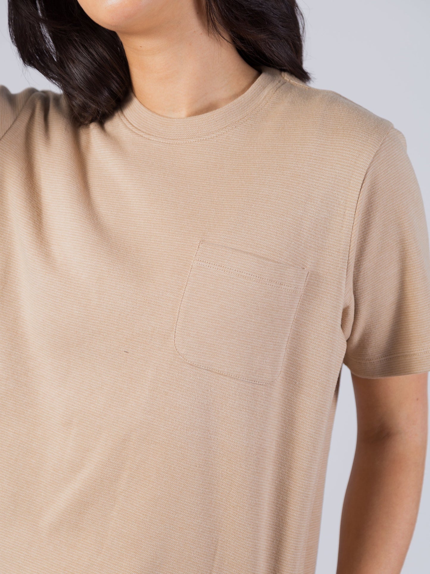 Thick yet airy, and ultra-soft. A super-high quality short sleeve tee that perfectly balances a premium, heavy-weight with flow and breathability. Thin stripes are meticulously woven throughout the fabric for an elegant and elevated style.