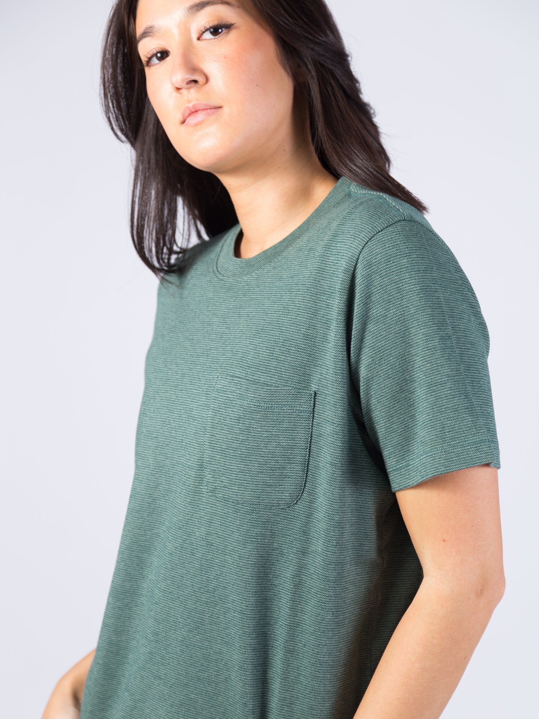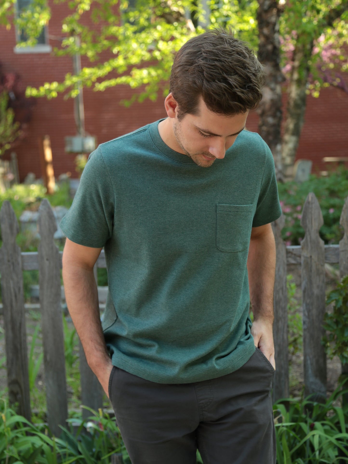 Thick yet airy, and ultra-soft. A super-high quality short sleeve tee that perfectly balances a premium, heavy-weight with flow and breathability. Thin stripes are meticulously woven throughout the fabric for an elegant and elevated style.