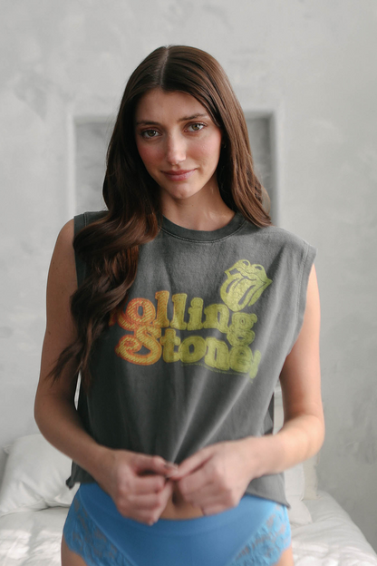 Can't get enough of our new Rolling Stones Hot Stuff Tank. Featuring the band's iconic logo in a cool ombre color scheme, this top is a must for all fans. Crafted from 100% Organic Cotton and washed for a vintage aesthetic, it is both stylish and comfortable. Rock it with a pair of vintage jeans to complete the nostalgic look or keep it casual with sweats.