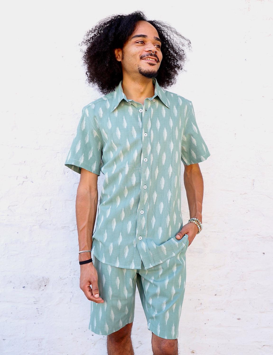Cool and casual, our men’s shorts are designed for everyday comfort. These Sage Shorts have a drawstring for optimal fit and pockets. They’re handwoven ikat fabric in a sage and white design that will be perfect for all of the warm days ahead.