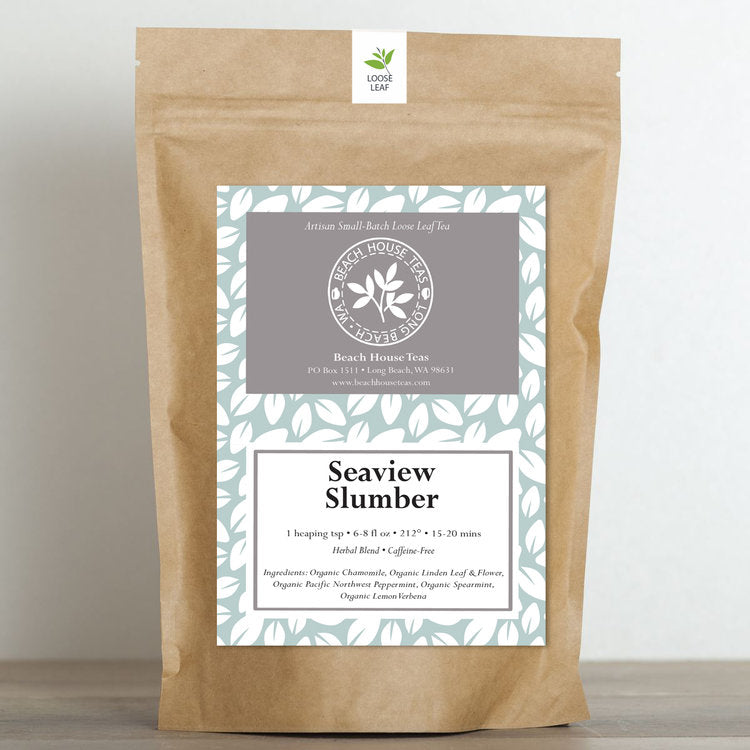 Seaview Slumber is your ticket to serenity, crafted with care from 100% organic and herbal loose leaf tea. Our enchanting blend combines the soothing properties of chamomile, linden flower, mint, and lemon verbena to create a tea that's not just a beverage but a peaceful ritual.