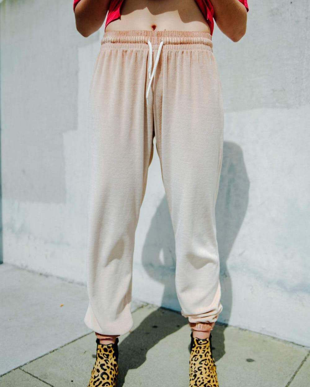 As an artful addition to your leisure wardrobe, the Sienna drawstring sweatpants are made with a lightweight, breathable bamboo cotton blend. Perfect for multi-season wear, these bottoms are fade-dyed in a shade of dusty pink to create a textured, airy look. Elastic ruched banding around the drawstring waist and ankles add a comfortable, fitted quality to these jogger pants. Pair yours with boots or sneakers to embrace the cozy vibe of the weekend.