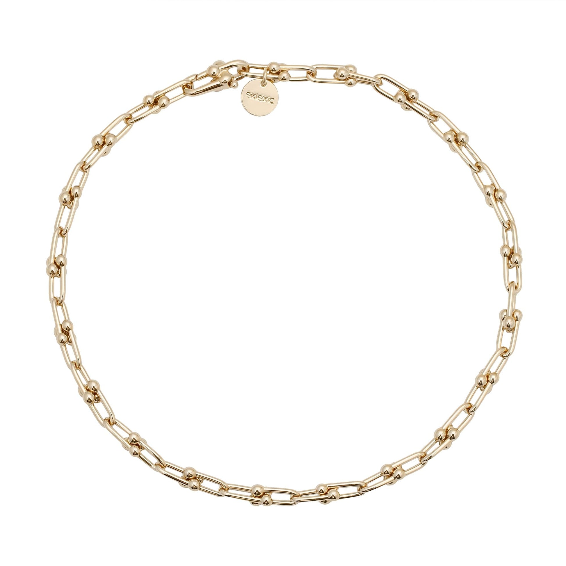 The Small Margaux Necklace is made from our U link chain fastened with a with a custom U link clasp. The necklace is a perfect stand alone piece, or care to make a statement? Pair it with any 1 , 2 or 3 of our chains to make more of an impact.