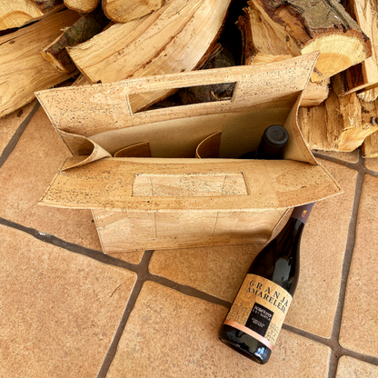 Each bag is carefully crafted by hand, making it a unique and one-of-a-kind accessory. The natural cork fabric used in the bag is not only eco-friendly and sustainable but also durable and water-resistant, ensuring that your wine bottles stay safe and protected.