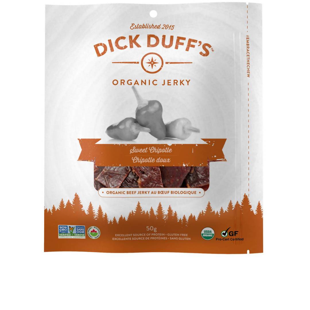Dick Duff's Sweet Chipotle Organic Beef Jerky is is that taste of the southwest that you've been craving! We start with smoke-dried jalapeño peppers and toss in some authentic adobo sauce to add tang and depth. The result? An incredibly addictive jerky with a hint of sweet and just the right amount of heat.