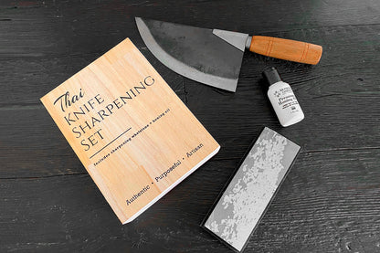 A quality knife deserves a quality sharpening set. To care for your Thai Knives and other premium knives in your collection, we've put together this knife sharpening set, including a fine Arkansas waterstone and premium honing oil presented in a beautiful mangowood storage box to match our Thai Knife Collection.